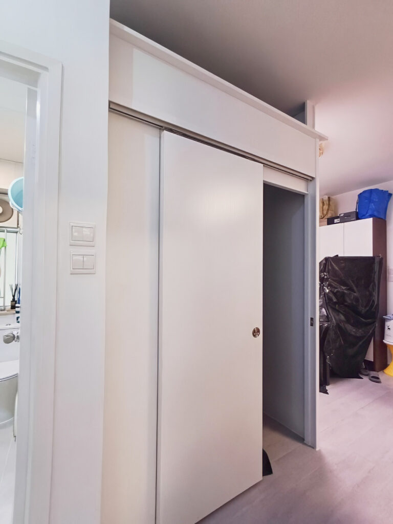 【私樓單位間房工程】 今次工程於私樓單位進行,客戶希望在原有空間內增加一間獨立房間。由於需要配合走廊動線,我們在設計時預留出流暢通道,並以趟門代替傳統開門,避免佔用空間。 客戶最終額外選購了趟門,安裝…